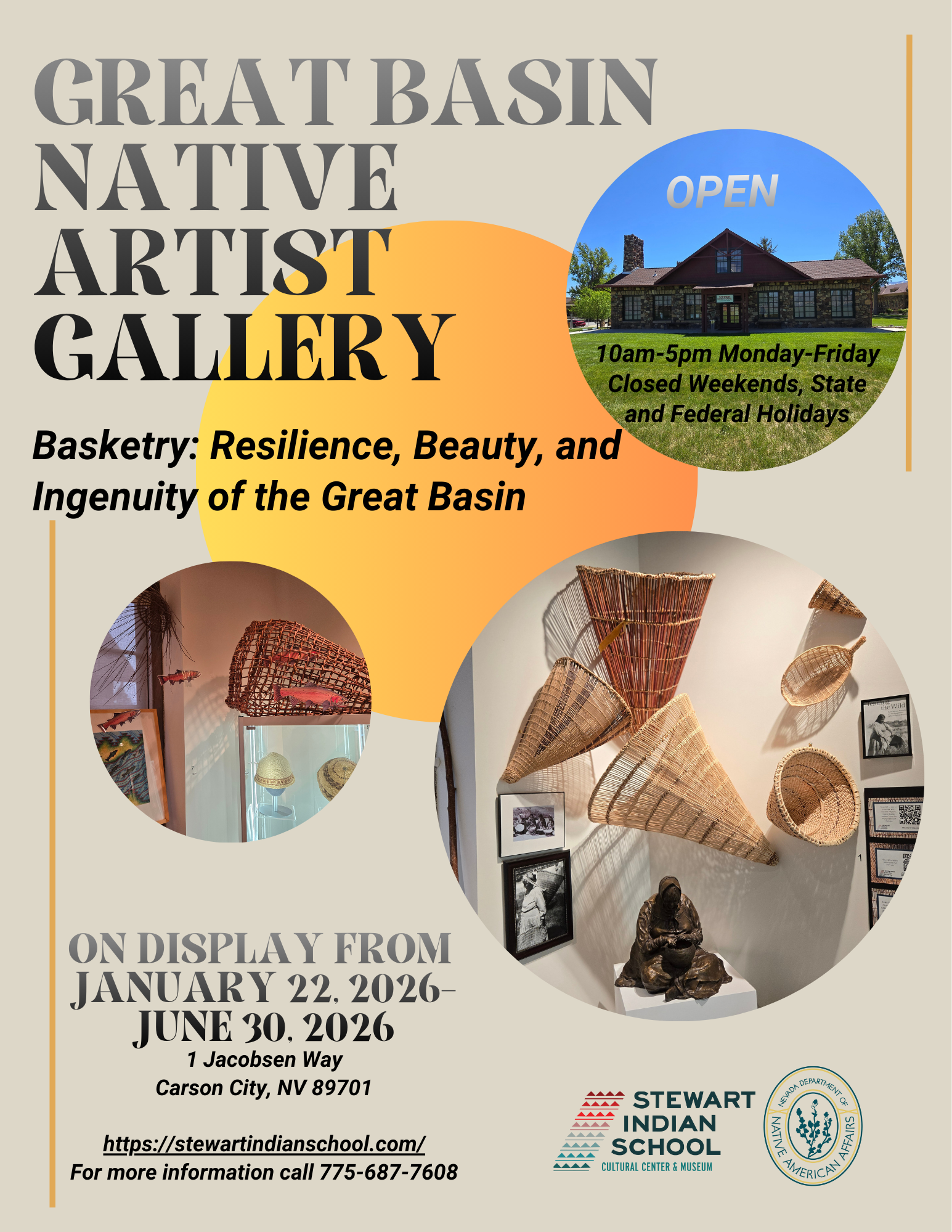 HOMEHISTORYHISTORIC PHOTO & VIDEO LIBRARYWORLD WAR I STUDENTSGREAT BASIN NATIVE ARTISTS GALLERYWALKING TRAILEVENTSPUBLICATIONSABOUT USINSIDE THE MUSEUMLIVING LEGACYNEWSRESOURCESCONTACT Stewart Indian School Cultural Center & Museum Events Check often for upcoming events